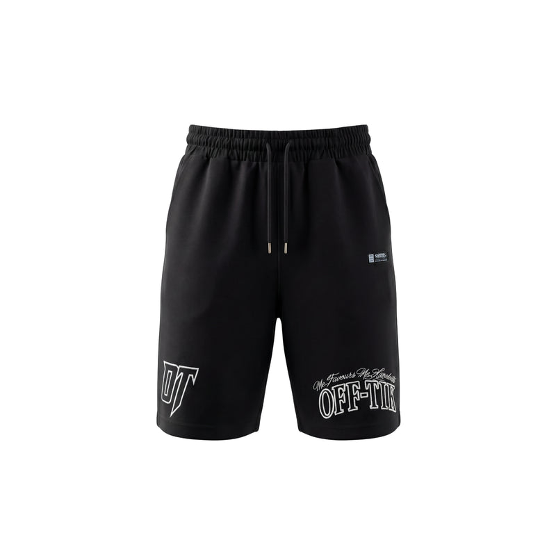 Oversized Script Shorts for the ones who SHOOT N SCORE. Jet-black base with high-octane white hits, OFFTIK™ arch and “No Favours No Handouts” as the main statement. A uniform piece for the shot takers only.